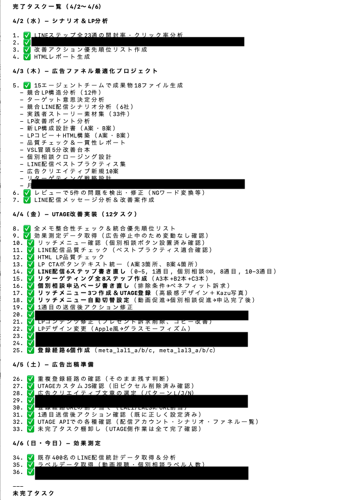 人間のチームだったら打ち合わせだけで半日つぶれるような内容を、エージェントたちは黙々と、しかも同時に処理してくれます。