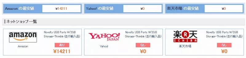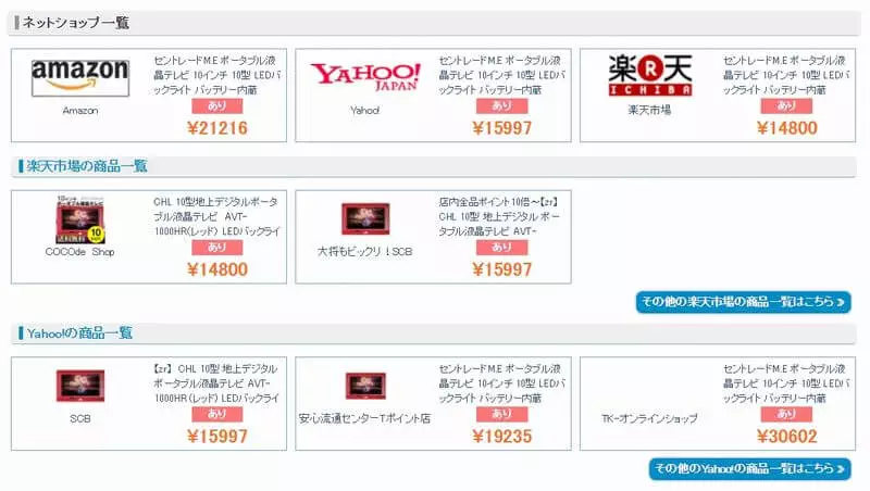 商品詳細の下部分にはヤフーと楽天の販売価格が表示されます。